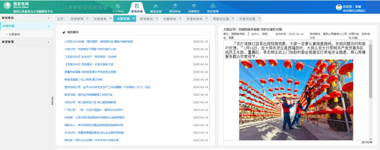 升級(jí)內(nèi)網(wǎng)圖片庫和融媒體平臺(tái),關(guān)聯(lián)拍攝作品及視頻素材,供公司各部門/單位選擇應(yīng)用。遴選優(yōu)秀作品推薦參加全國品牌故事大賽、新華社國社之境——世紀(jì)光影攝影展、平遙國際攝影節(jié)。與人民攝影報(bào)、山西電視臺(tái)、運(yùn)城電視臺(tái)等媒體聯(lián)盟合作推廣傳播,不斷擴(kuò)展作品對(duì)外展示渠道,增加曝光度,提升傳播力。